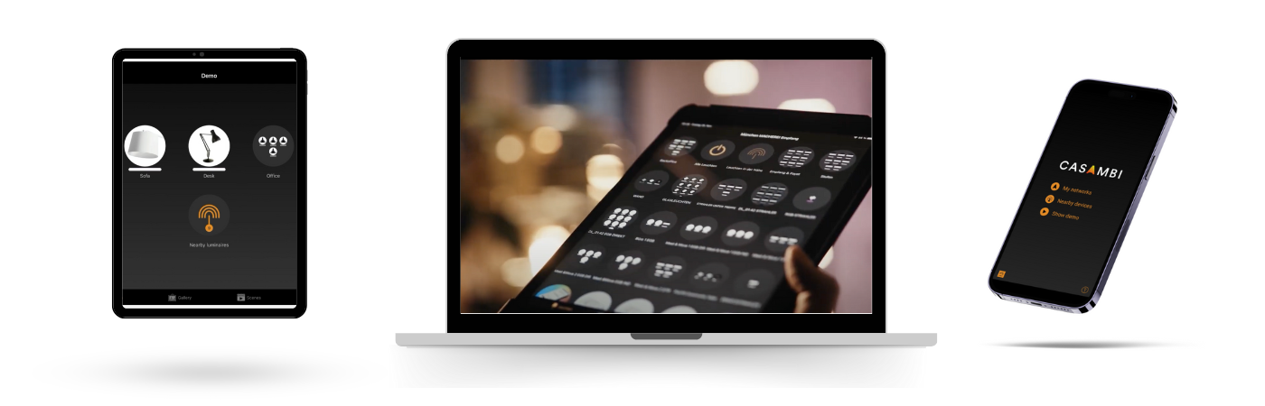 Casambi has designed an intuitive, user friendly app that allows you to easily access, program and control your lighting system. Anyone from a lighting professional to a homeowner will be able to use their system with ease and the system can be accessed remotely from anywhere in the world.